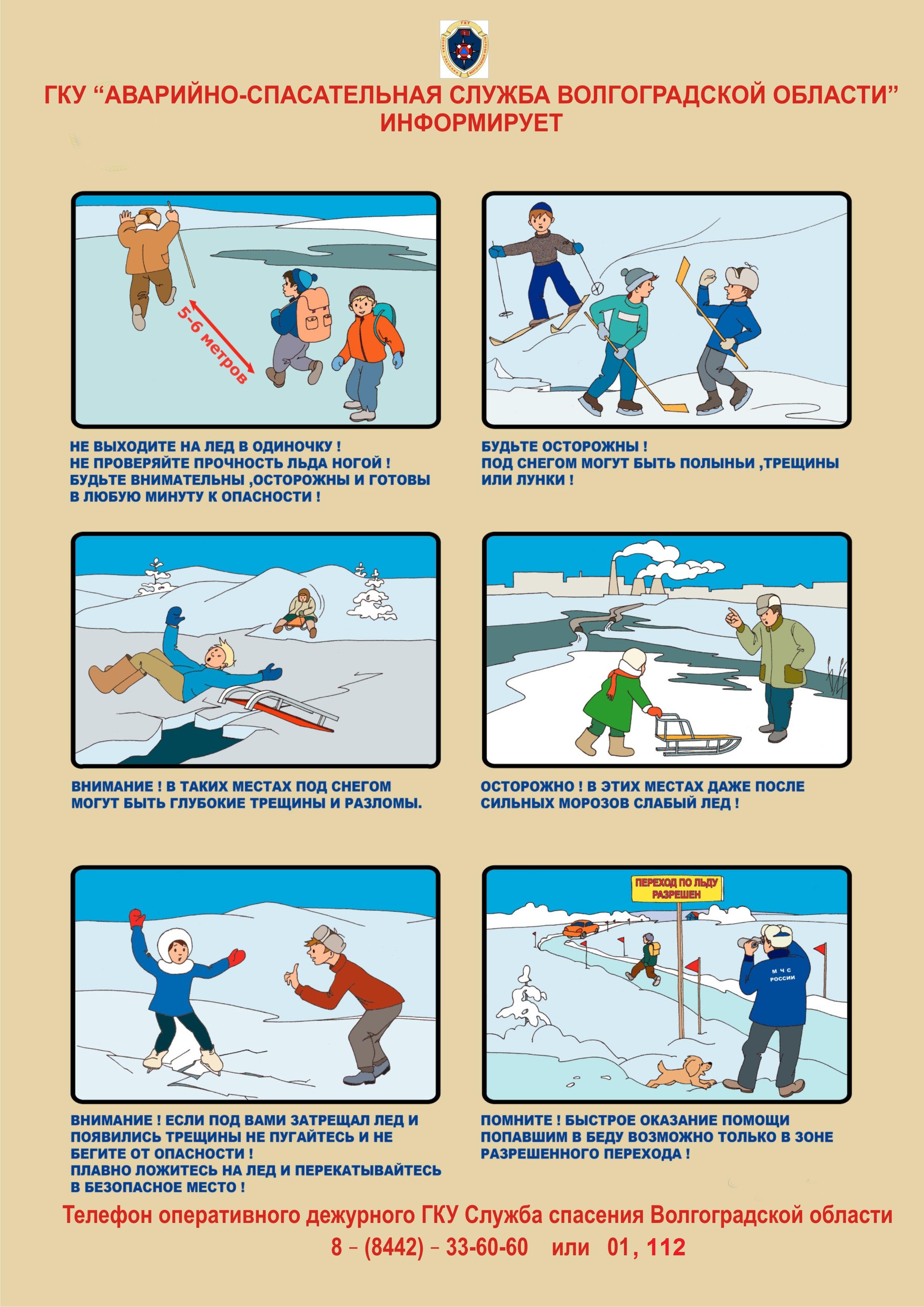 В целях решения социально - значимой задачи по обучению населения основам безопасного поведения на водных объектах в осенне - зимний период 2025-2026гг. и снижению риска нанесения вреда жизни и здоровью граждан на водных объектах на территории города Волгограда, просим Вас просмотреть трансляцию направленных видеороликов на темы: «Осторожно сосульки» и «Осторожно тонкий лед» по следующим ссылкам:
